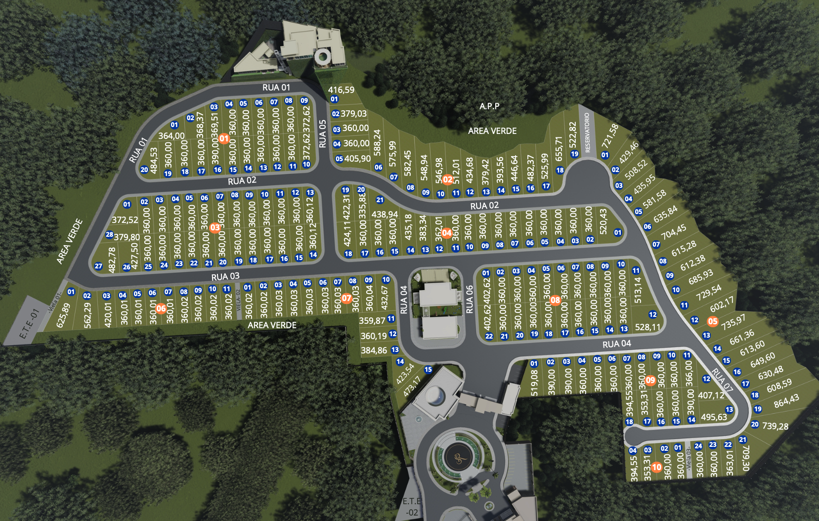 Visualize a disposição completa dos lotes antes de fazer sua escolha